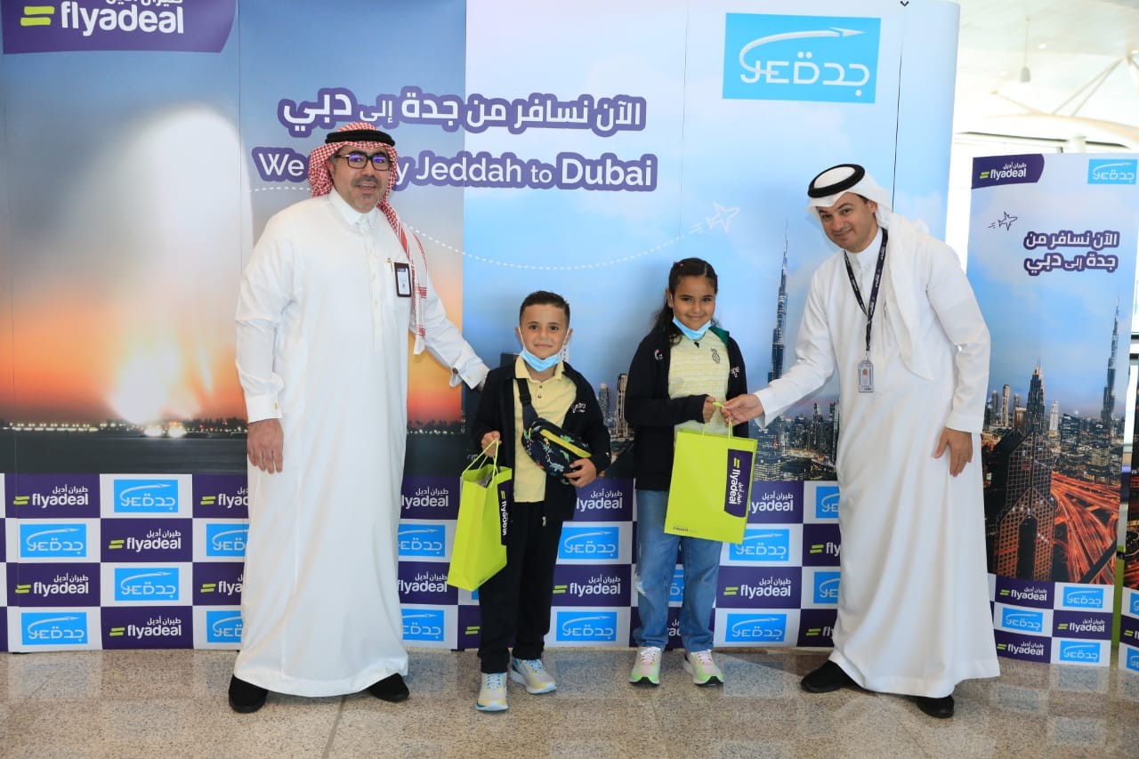 بعد ذلك تم التقاط الصور التذكارية وتسليم عدد من الهدايا وهي عبارة عن نموذج طائرة حديثة لأسطول الشركة لمدير عام مطار الملك عبد العزيز الدولي، ومن ثم تم تقطيع تورتة بهذه المناسبة، وفي الختام ودع موظفو أديل المسافرين على متن الرحلة الأولى من جدة الى دبي والتي تحمل الرقم (F3703) بباقات الورود متمنين لهم رحلة سعيدة وموفقة.