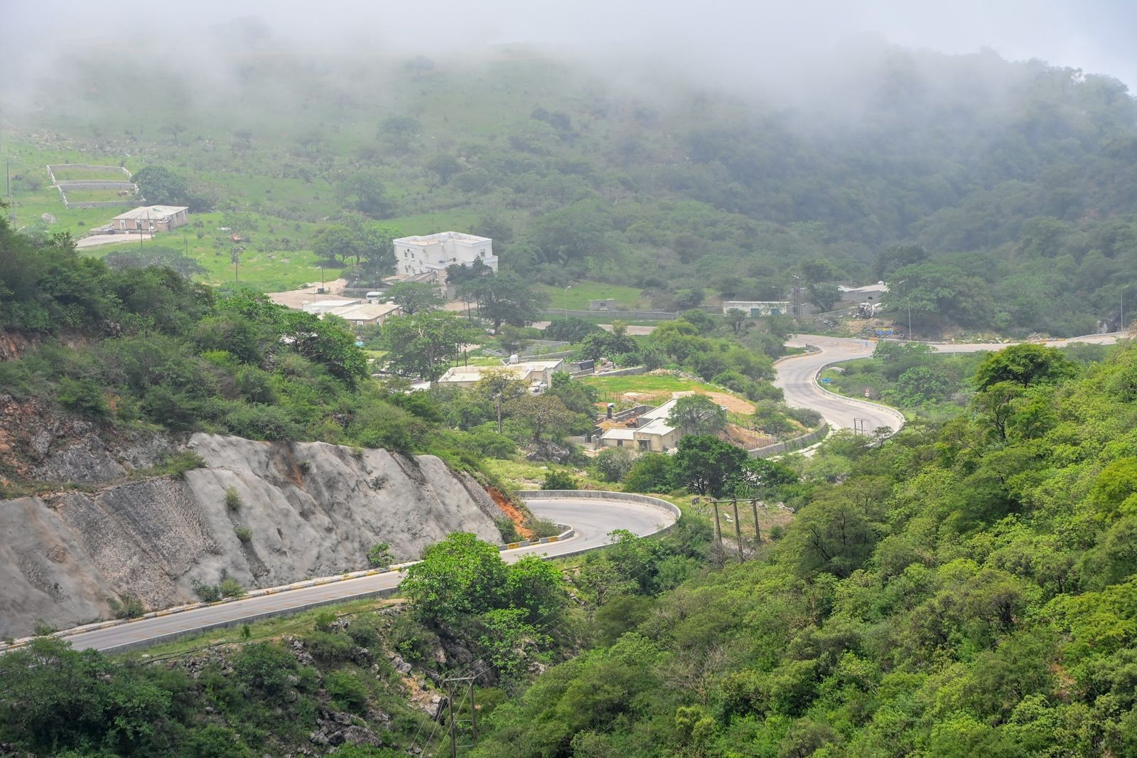 وتكتسي المناطق الجبلية والسهول باللون الأخضر نتيجة استمرار هطول الأمطار الخفيفة والرذاذ المتقطع على السهول والجبال.