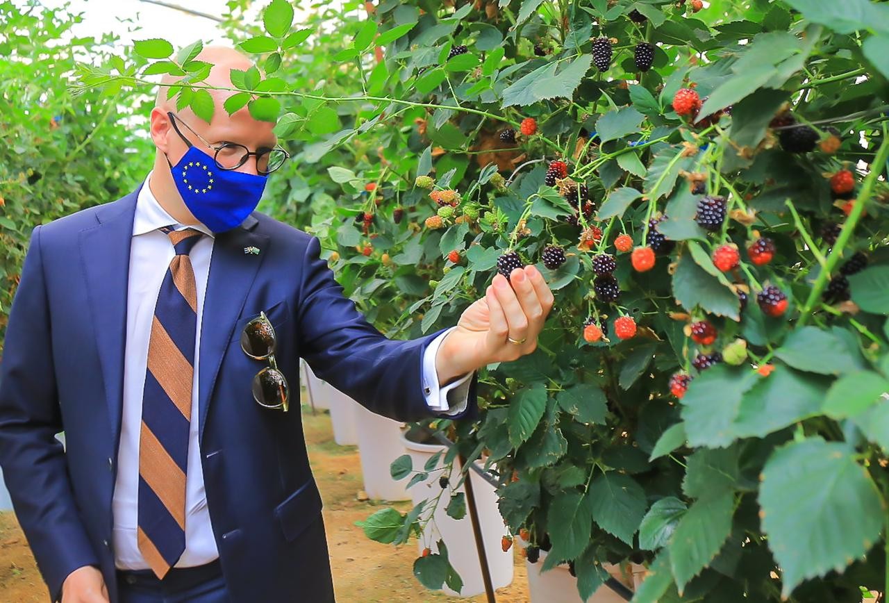 بداية زار السفير حديقة الفراولة والتوت البري لصاحبها المهندس حمد اللحيدان ،وكان في استقباله المشرف العام على الحديقة إبراهيم الخزيم وقد تجوّل داخل حديقة الفراولة والتوت البري واطلع على ما تحويها من فعاليات متنوعة كقطف الفراولة والتوت وتعرف على طريقة زراعة الفراولة والتوت وطريقة ريها “الزراعة المائية” واستمع لشرح وافي من "الخزيم" عن الحديقة وعن تجربة الزراعة الذكية للبيوت المحمية وهي أول تجربة في منطقة القصيم حيت يتم رصد آلي لجميع معلومات البيت المحمي من درجة الحرارة و ملوحة التربة كل عشر دقائق و إرسالها آليا إلى الشبكة العنكبوتية للاستفادة والتحكم فيها وكما شارك في فعالية قطف الفراولة والتوت بعد ذلك زار مقصورة السويلم التراثية واطلع على أرجاء المقصورة التراثية واستمع إلى شرح مفصل عن أجزاء المقصورة وتاريخها والتي تحكي حياة الآباء والأجداد، ثم زار سعادة السفير مقصورة الراجحي التراثية وكان في استقباله فور وصوله يوسف بن عبدالرحمن الراجحي مشرف المقصورة واطلع على ما تحويه كمبنى المقصورة والمسجد القديم الأثري والسواني وهي عملية استخراج الماء من البئر (القليب) باستخدام الجمال.