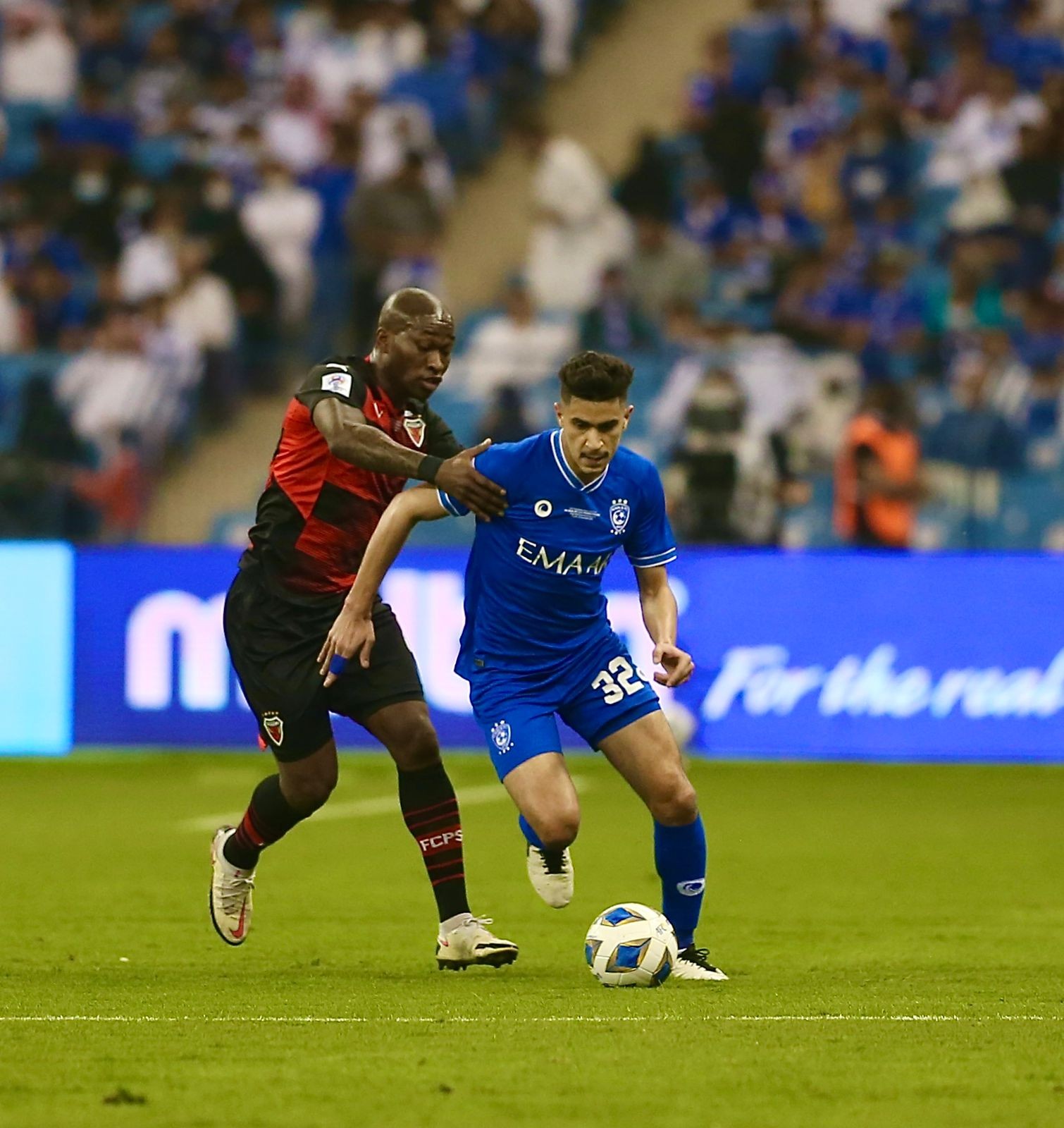 إنتهى اللقاء الذي جمع الهلال بالفريق الكوري بوهانج في نهائي ابطال اسيا بفوز هلالي بهدفين دون رد افتتحها  ناصر الدوسري بعد مرور ثلاثين ثانية فقط من بداية الشوط الاول بصاروخية سكنت شباك الكوري بعدها حتى وان هدأ الرتم واستحوذ الكوري الا ان الهلال يمشي بالهلال بالمباراة الى حيث يريد تخللها فرصة كبيرة للتعادل تصدى لها المعيوف ليمضي الشوط الاول بين سجال هنا وهناك دون تغيير في النتيجة حتى انتهى الشوط الاول بهدف دون رد..