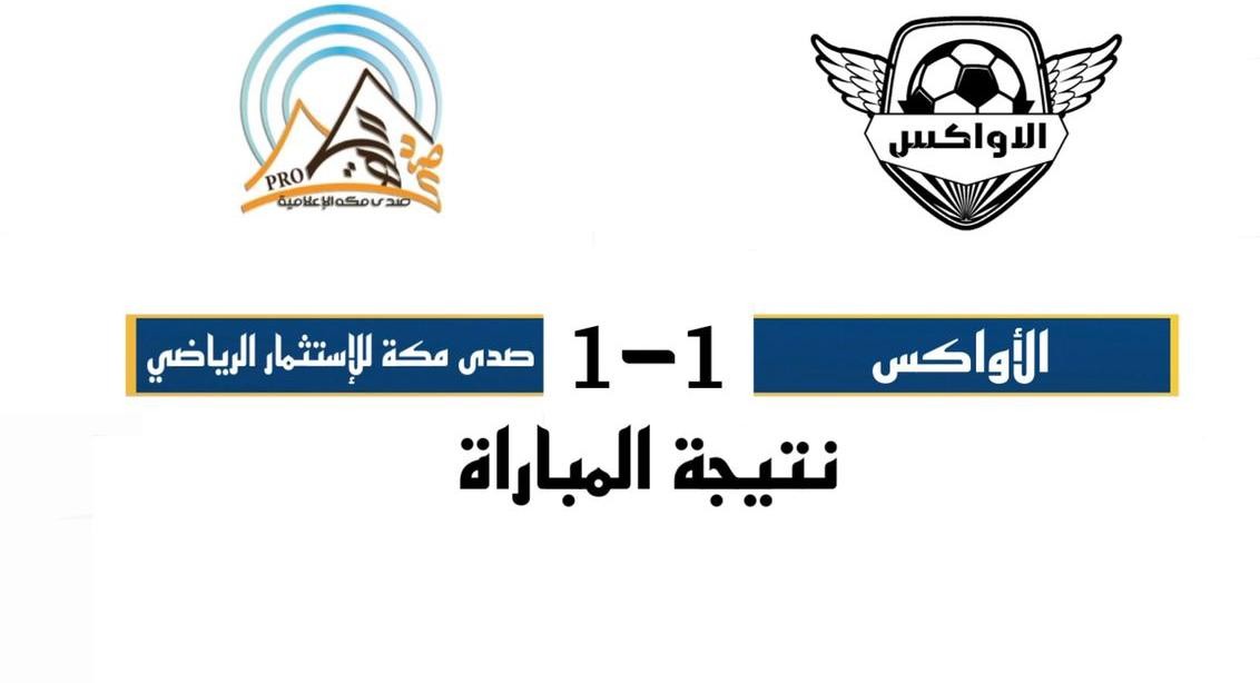 وفي المباراة الثانية التي جمعت فريق الأواكس مع فريق صدى مكة برو ، وانتهت المباراة بالتعادل الإيجابي بهدف مقابل هدف ولازلت البطولة تشهد حضورا جماهيريا كبيرا.