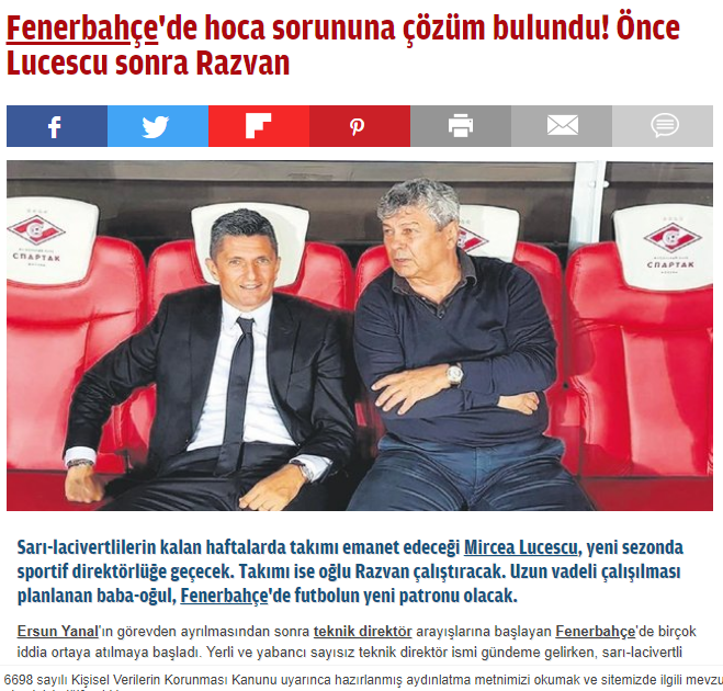 وبحسب صحف تركية فإن فناربخشة قريب من اعلان تولي ميرسيا لوشيسكو قيادة الدفة الفنية للموسم الحالي، كما أن النادي يخطط لجعل الابن رازفان لوشيسكو مدير فني للموسم القادم وميرسيا سيكون المدير الرياضي.