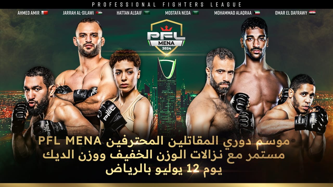 أعلنت رابطة المقاتلين المحترفين (PFL)، الجهة المنظمة للدوري الرياضي الأسرع نمواً والأكثر ابتكاراً في العالم، عن قائمة نزالات السلسلة الثانية من بطولة دول "الشرق الأوسط وشمال أفريقيا"، والتي ستقام يوم 12 يوليو الحالي في الصالات الخضراء في العاصمة الرياض، ويمكن الحصول على تذاكر الحدث عبر موقع Platinum List