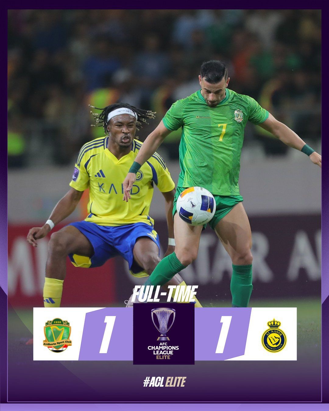 النصر في اولى مبارياته الآسيوية يتعادل مع الشرطة العراقي
