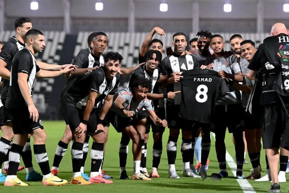 واحتفل لاعبو الشباب بهدف الفوز في مرمى التعاون بحمل قميص زميلهم فهد المولد الذي يمكث في أحد مستشفيات الرياض لتلقي العلاج بعد سقوطه من شرفة منزله في دبي.