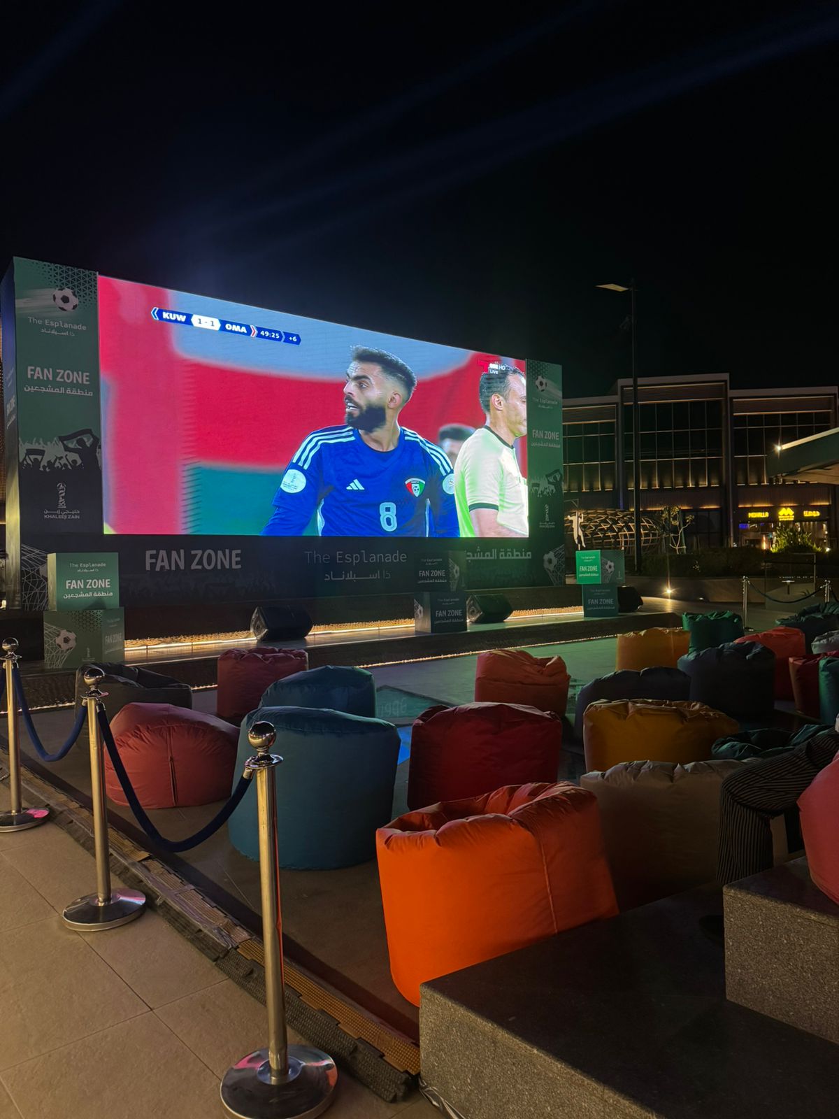 بدأت منطقة المشجعين التي تم تجهيزها لأستقبال زوارها بشاشة رقميه بشكل كبير، تفاعلاً مع بطولة "خليجي 26" في ذا اسبلاناد مول على طريق تركي الاول. حيث استقبلت زوارها من مساء أمس السبت، والتي تفاعلت مع حفل الافتتاح ثم نقل كافة مبارتي الكويتي و العماني.