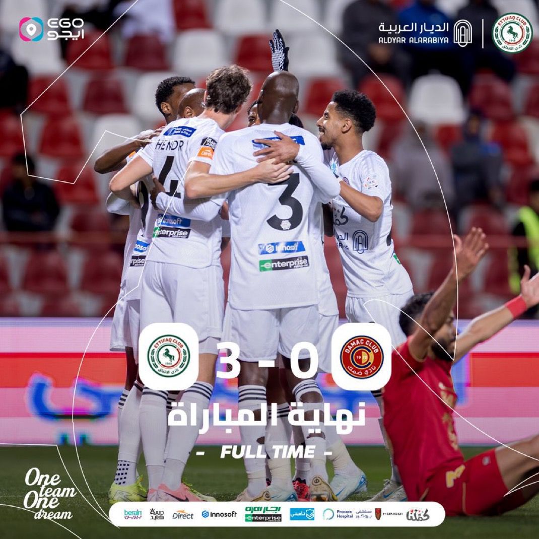 وبهذا الفوز، تقدم فريق الاتفاق إلى المركز الحادي عشر برصيد 18 نقطة، فيما تجمد رصيد ضمك عند 18 نقطة بذات النقاط ، في المركز العاشر